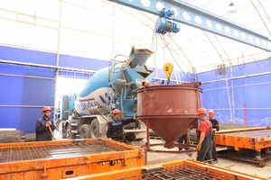 Формовка: Приготовленная смесь загружается в специальные формы, где производится формовка будущих аэродромных плит. На этом этапе важно обеспечить равномерное распределение смеси и точное соблюдение размеров изделия.
